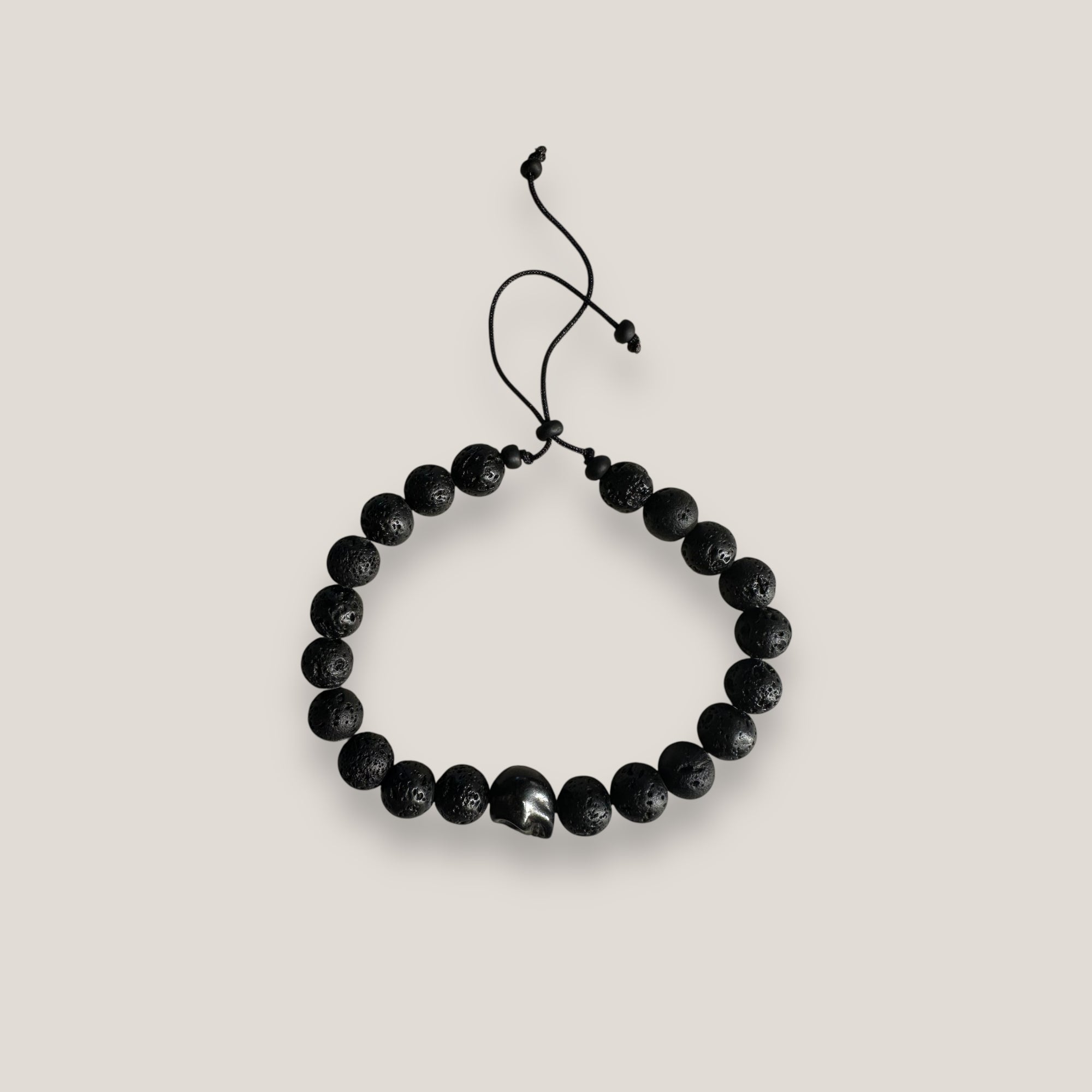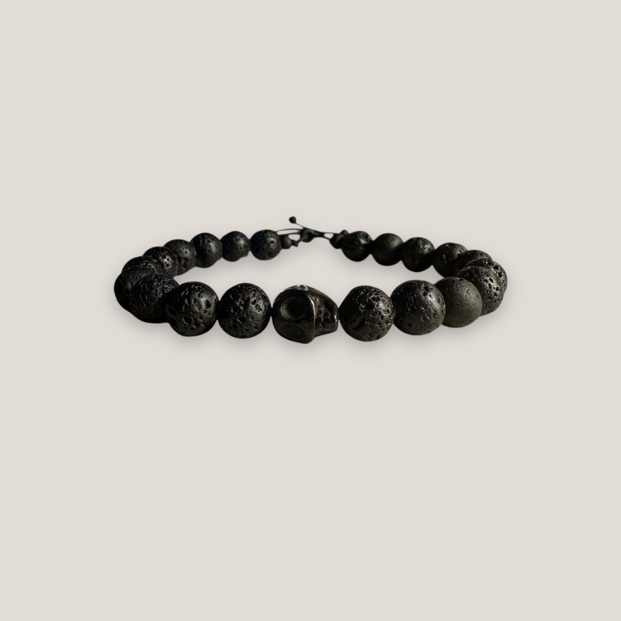 Pulsera con calavera de howlita negra 8mm y lava negra 8mm