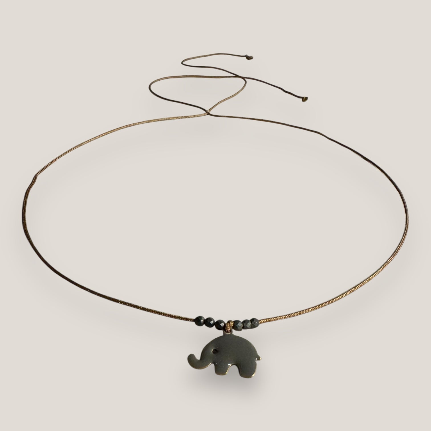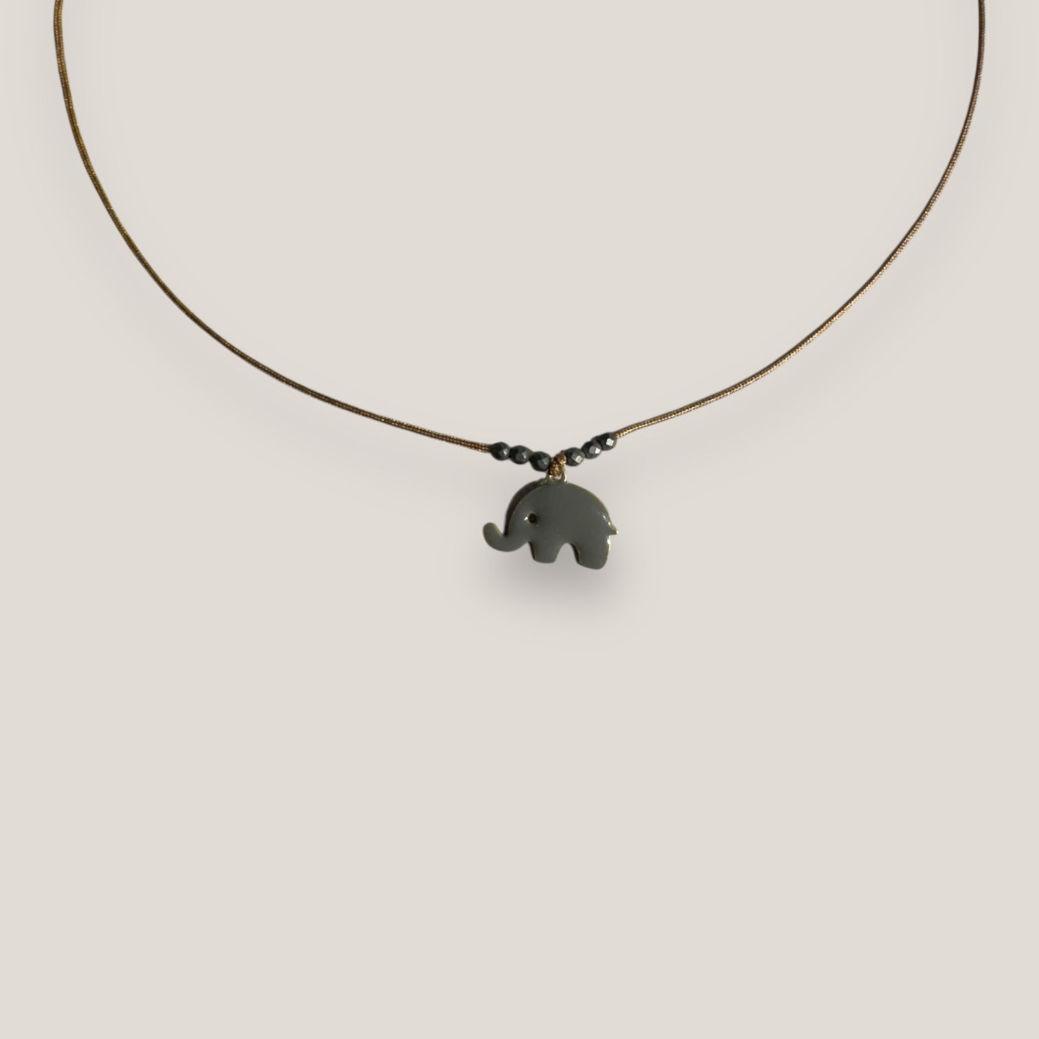 Collar midi con elefante esmaltado en gris y abalorios de cristal grises