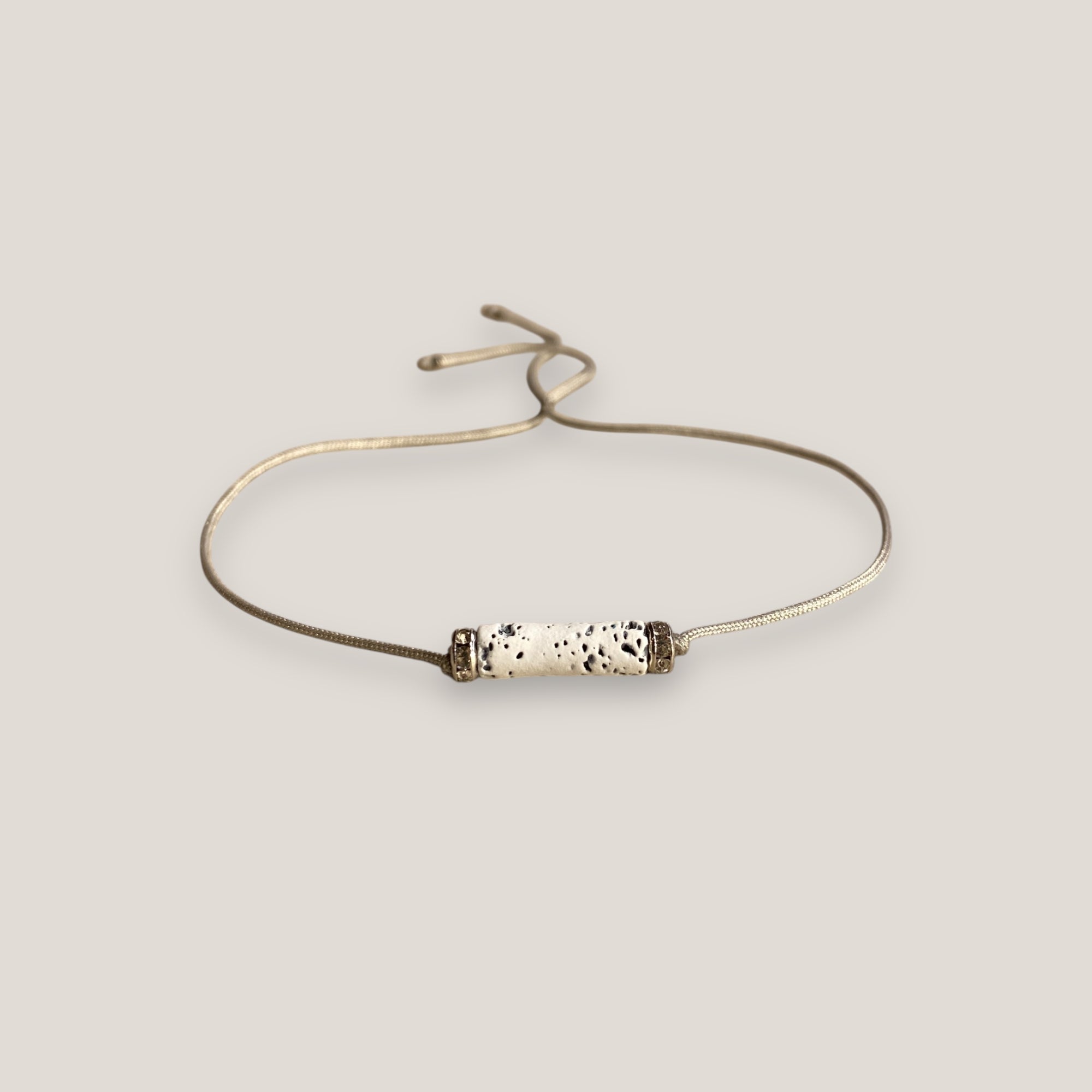 Pulsera minimal con tubo de lava blanca y cuentas plata con brillis blancos