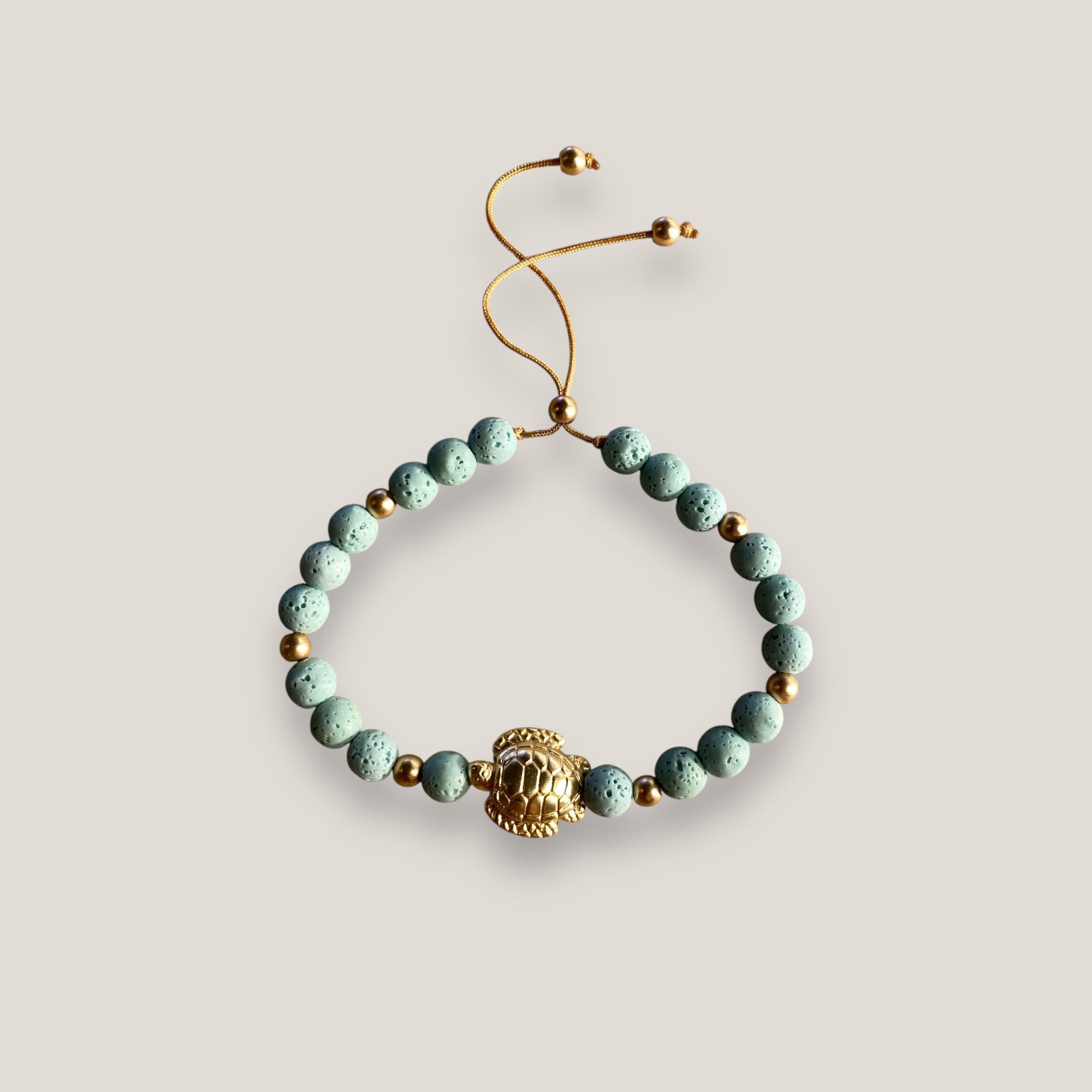 Pulsera con tortuguita dorada y lava blanca