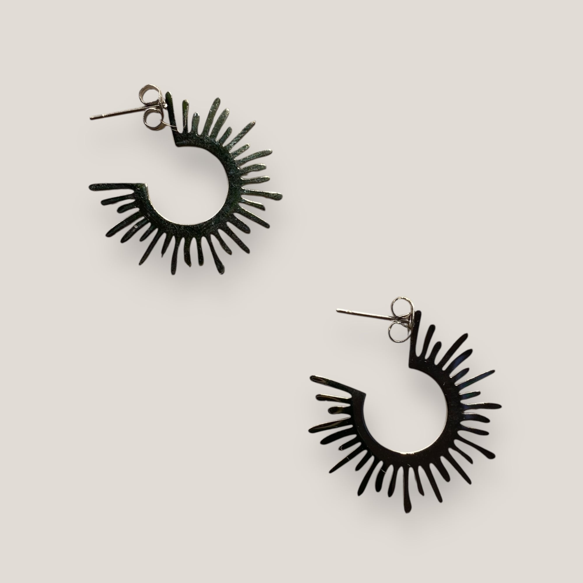 Gran Dafne Gunmetal-Hakenohrringe mit mattschwarzer Medaille, schwarzer Lava und Filigran mit Glitzer