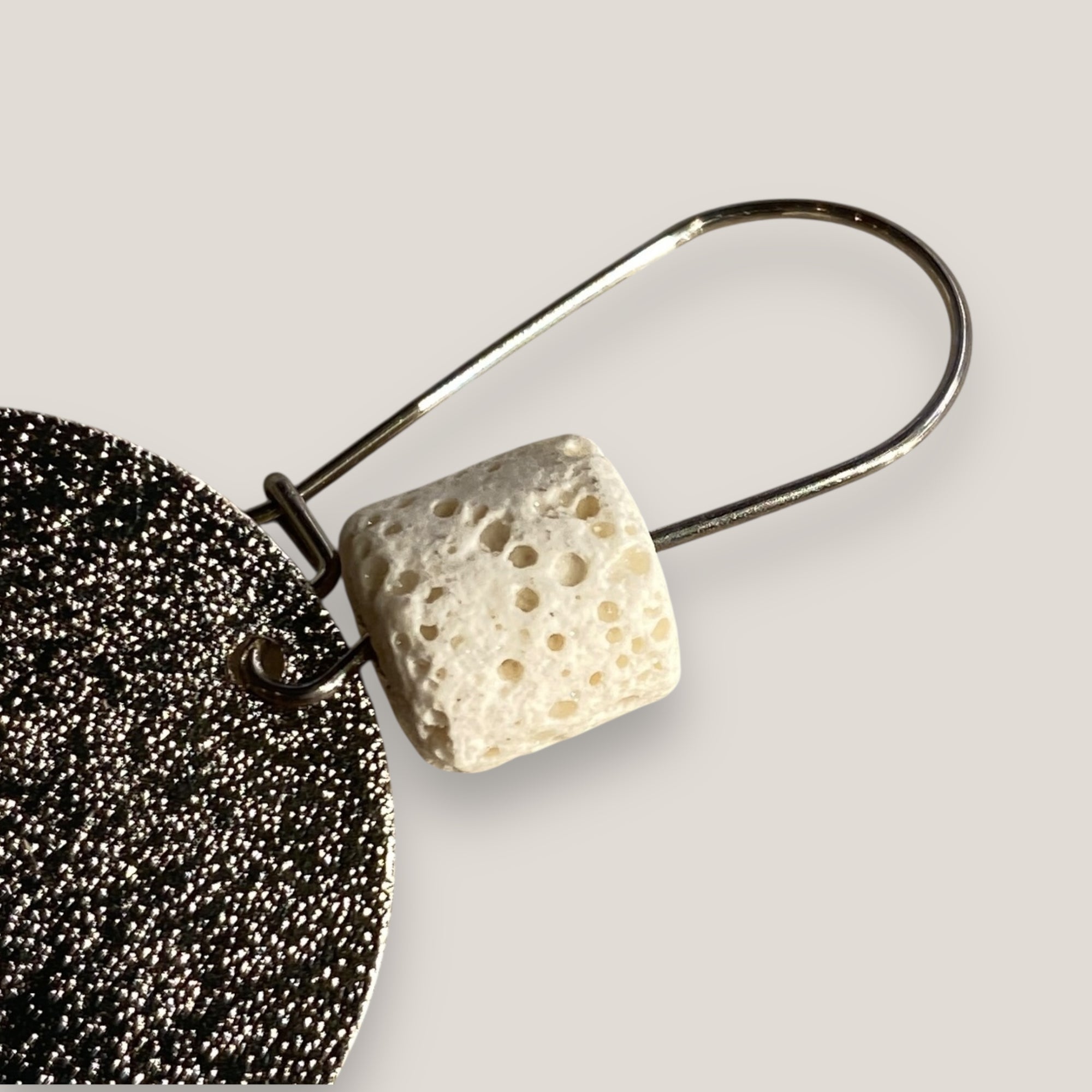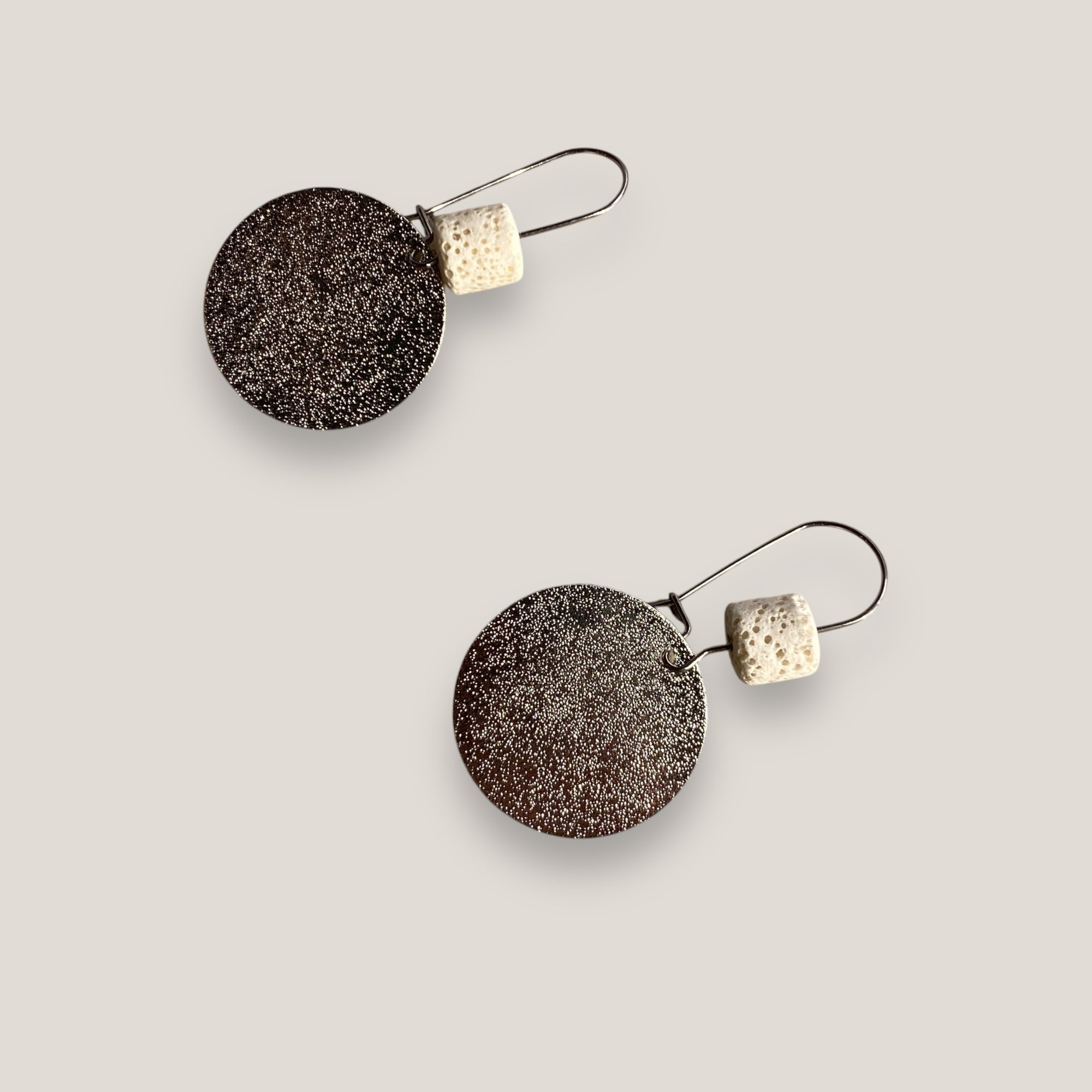 Pendientes Fuerte Coral negro con gancho, medalla esmerilada y lava gunmetal y esponja coral