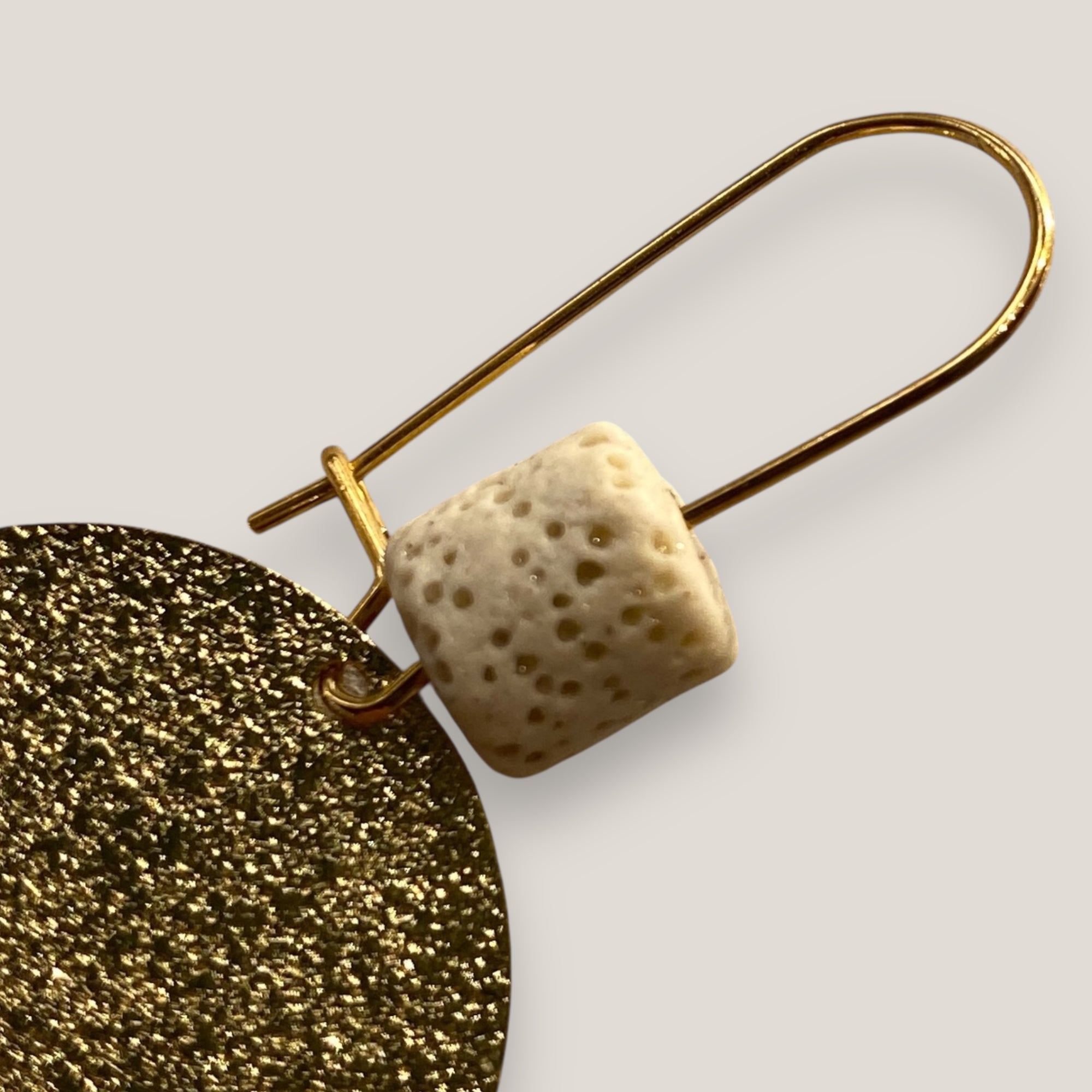 Pendientes Fuerte Beads gancho acero oro con barril esponja coral beis y medalla esmerilada