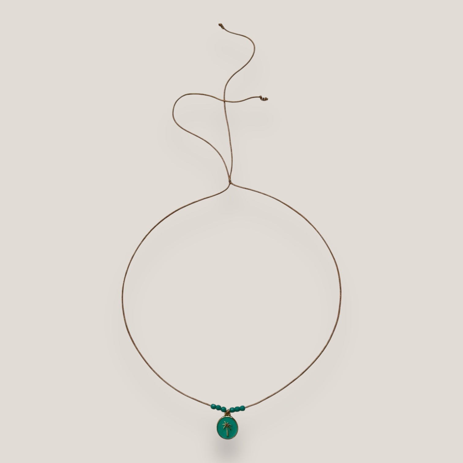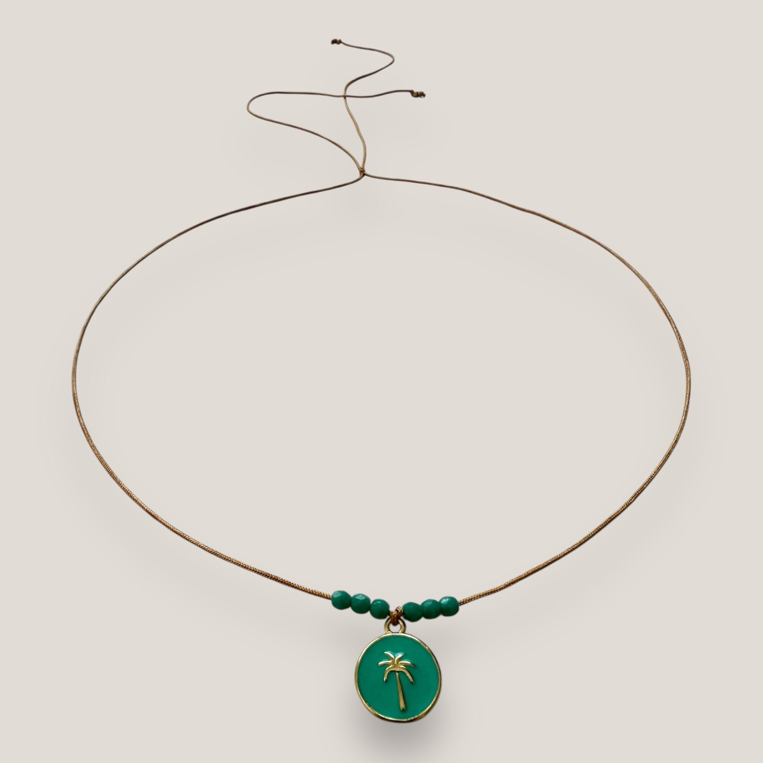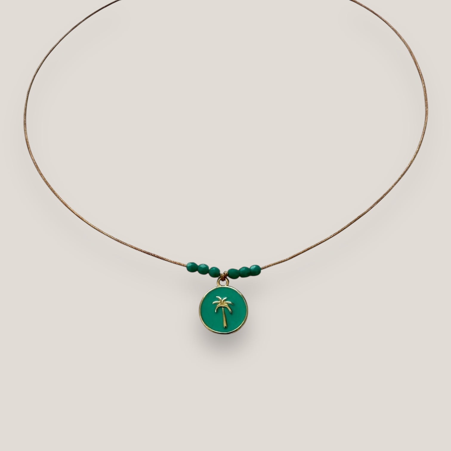 Collar midi con medalla dorada esmaltada en rosa con palmera oro